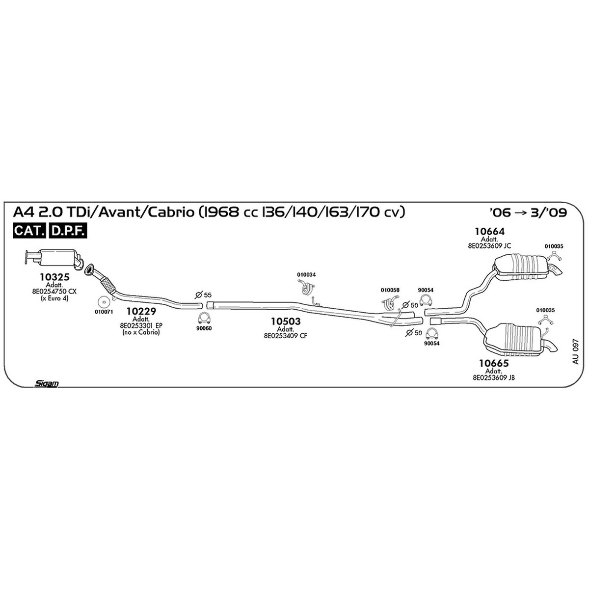 DPF Audi A4 Cabrio 8H7 – 8HE 2.0 TDi Cabrio 1968 cc 136 / 140 cv Motore BRC / BPW DPF Cat 2006 -> 03/09 (10325)