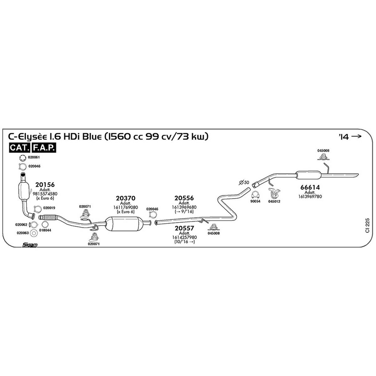 FAP Citroen C-Elysèe 1.6 HDI Blue 1560 cc 99 cv 73 kw Cat DPF 2014 -> (20370)