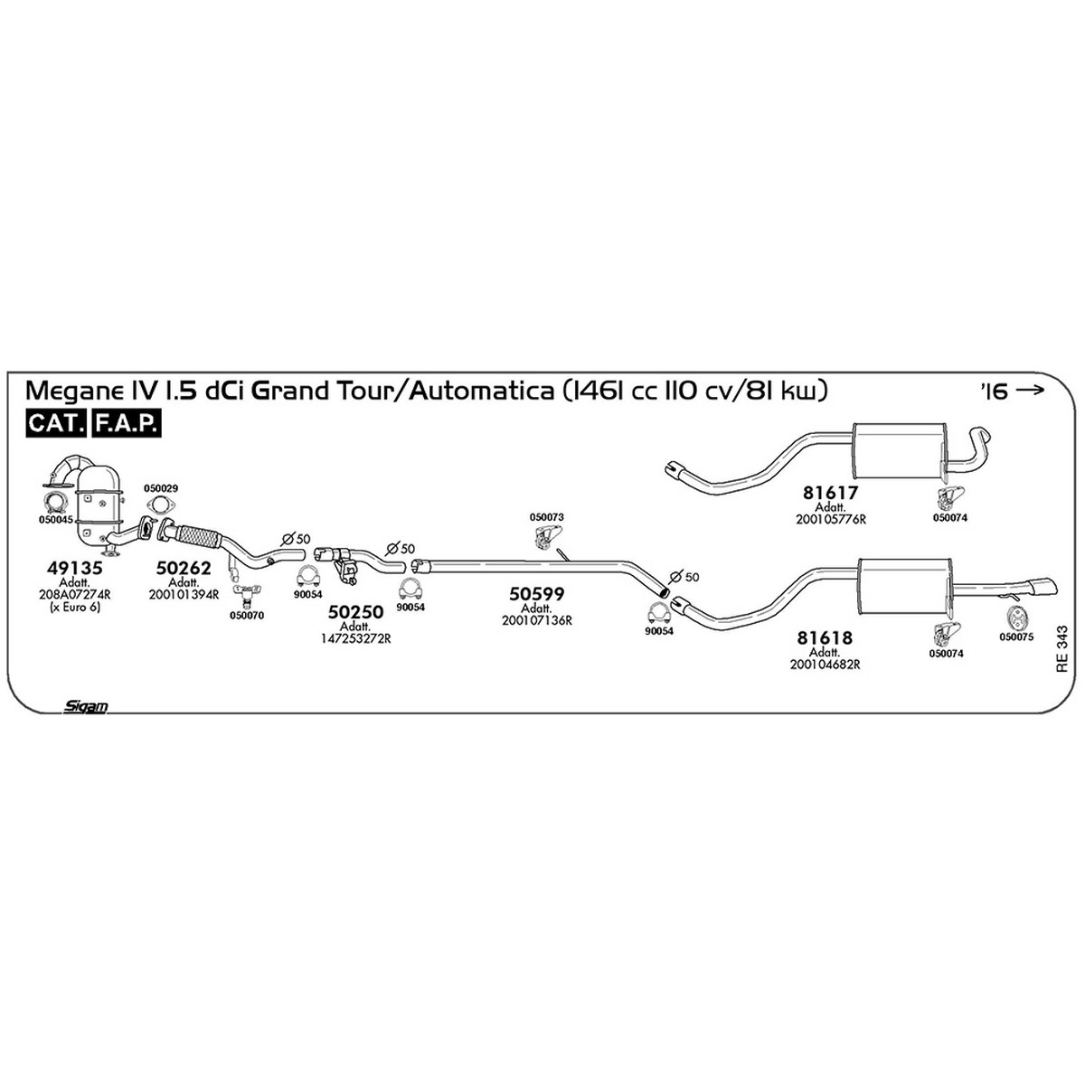 FAP Renault Megane IV 1.5 dCi Grand Tour / Automatica 1461 cc 110 cv 81 kw Cat FAP 2016 -> (49135)