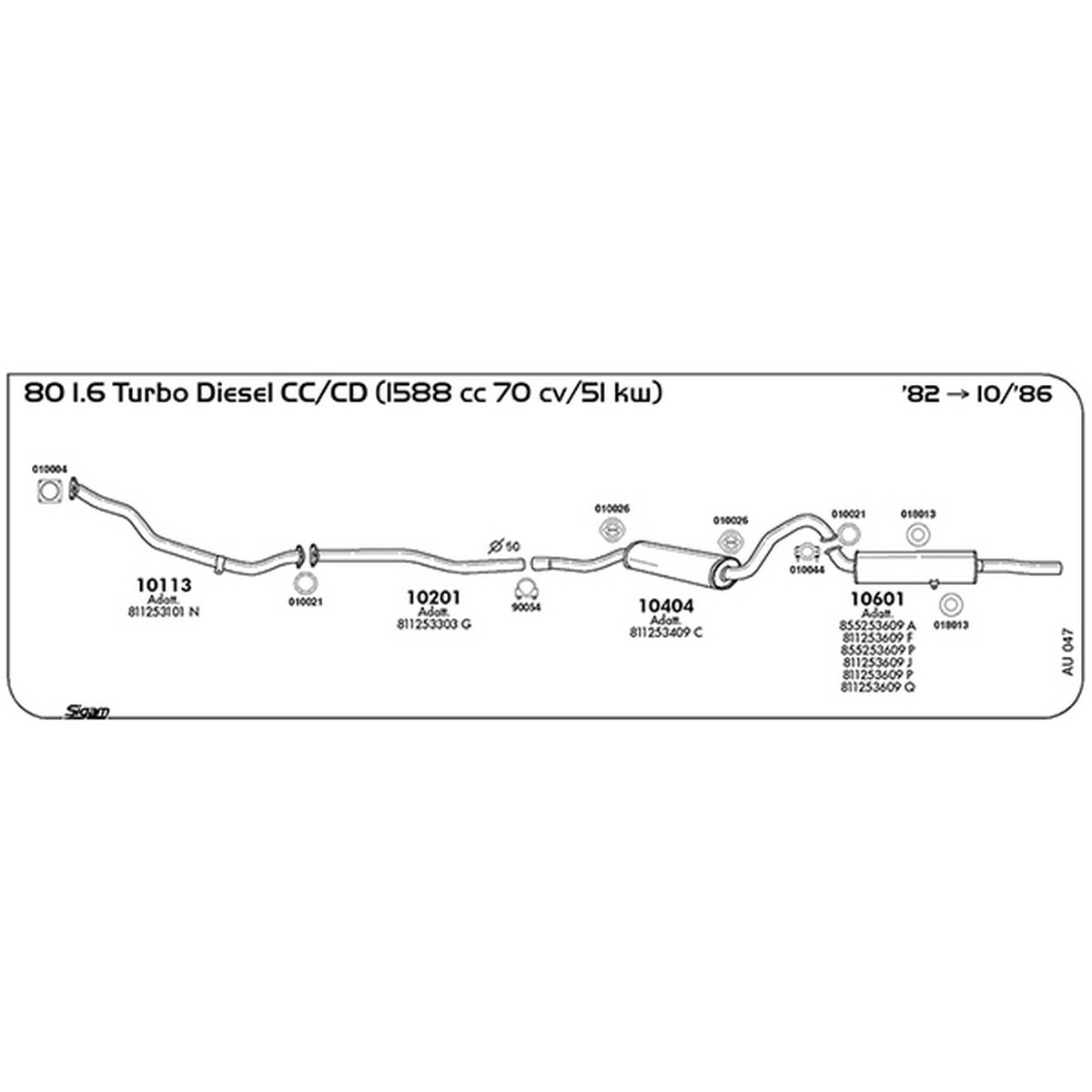 Tubo anteriore Audi 80 B2 1.6 Turbo Diesel CC / CD 1588 cc 70 cv 51 kw 1982 -> 10/86 (10201)