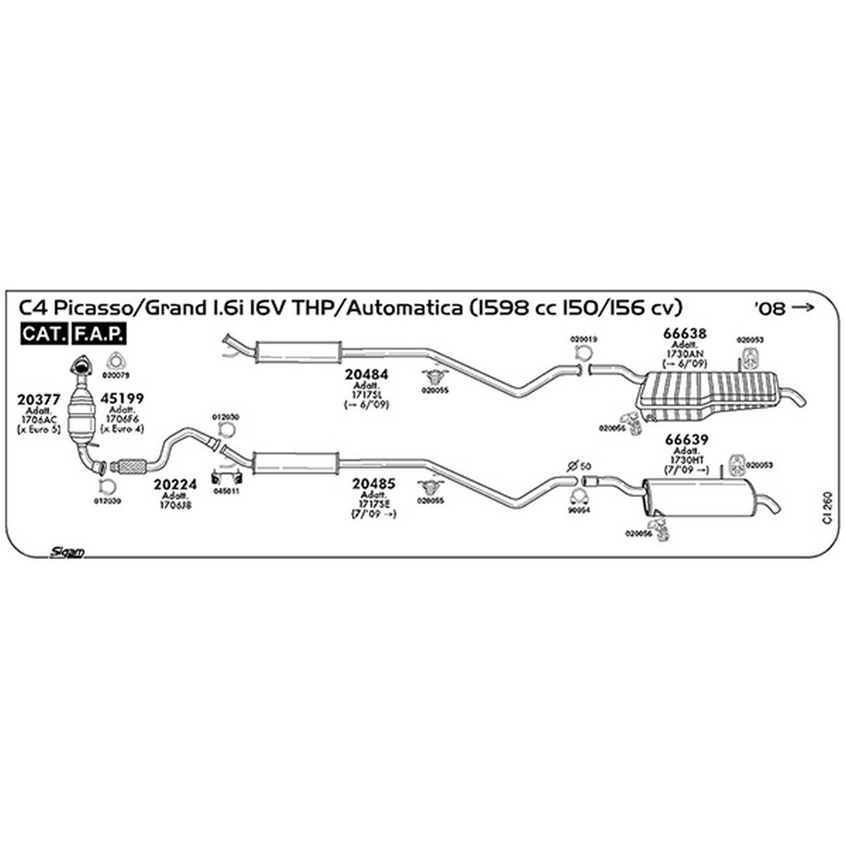 Tubo anteriore Citroen C4 Picasso/Grand I 1.6i 16V THP / Automatica 1598 cc 150 / 156 cv Cat 2008 -> (20224)