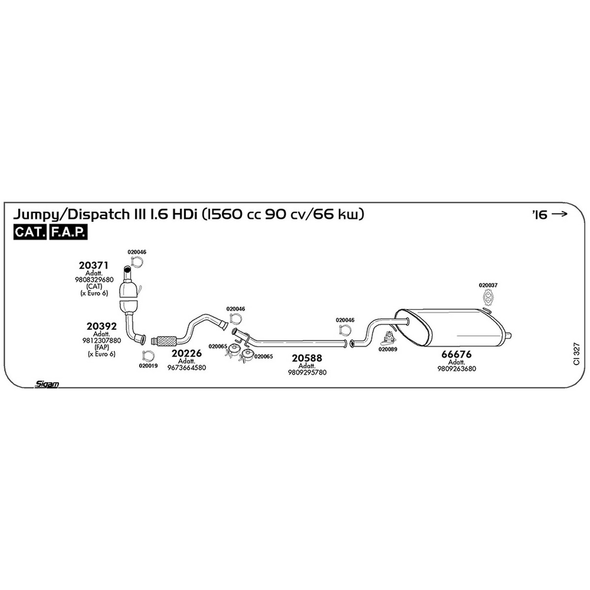 Tubo anteriore Citroen Jumpy III 1.6 HDI 1560 cc 90 cv 66 kw Cat FAP 2016 -> (20226)