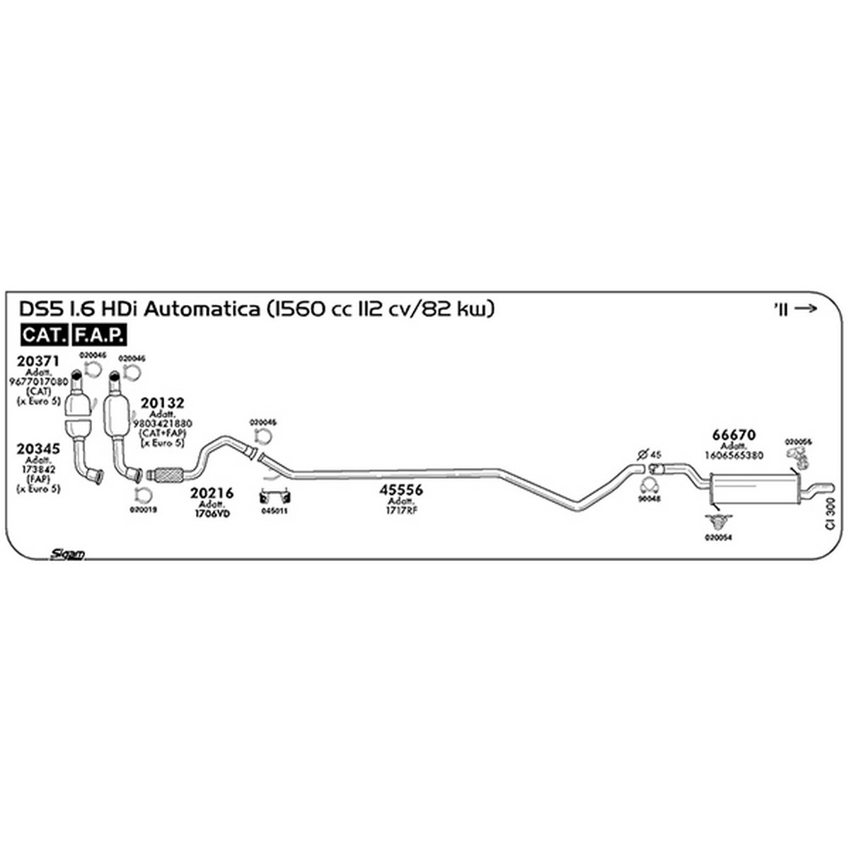 Tubo anteriore Ds DS5 1.6 HDI Automatica 1560 cc 112 cv 82 kw Cat FAP 2011 -> (20216)