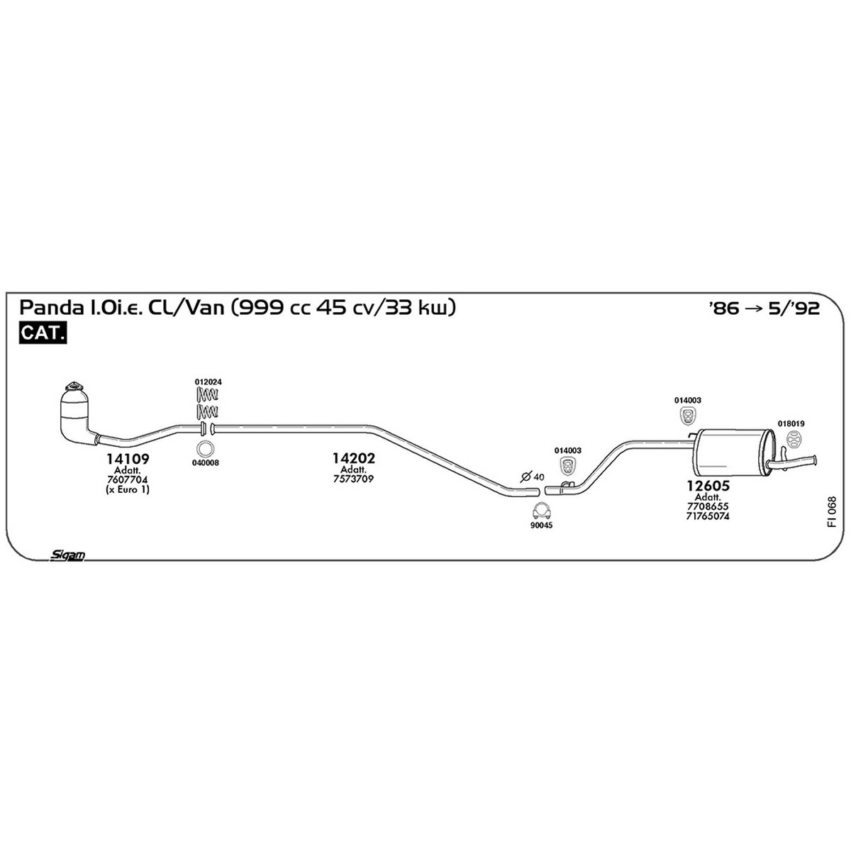 Tubo anteriore Fiat Panda I 141 1.0i.e. CL / Van 999 cc 45 cv 33 kw Cat 1986 -> 05/92 (14202)