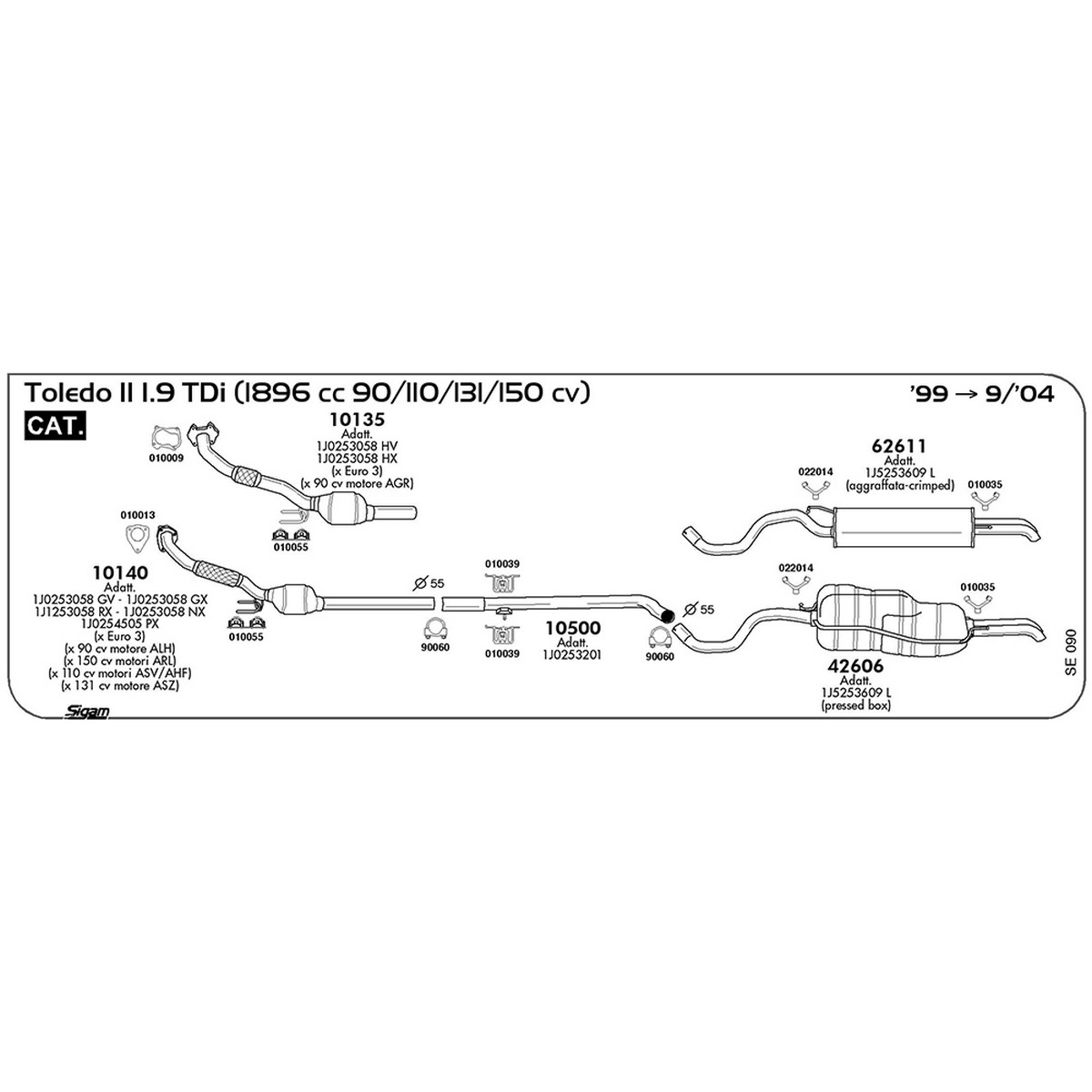Tubo intermedio Seat Toledo II 1.9 TDi 1896 cc 90 / 110 / 131 / 150 cv Cat 1999 -> 09/04 (10500)